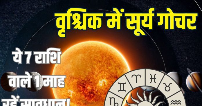 Surya Gochar In Vrishchik Rashi 2025: सूर्य का गोचर वृश्चिक राशि में 16 नवंबर को होने जा रहा है. उस दिन दोपहर में 01:44 बजे सूर्य का राशि परिवर्तन होगा. ग्रहों के राजा सूर्य 16 दिसंबर को 04:26 एएम तक वृश्चिक में रहेंगे. सूर्य का गोचर 7 राशिवालों पर नकारात्मक असर डाल सकता है. इन लोगों का 1 माह तक परेशानियों का सामना करना पड़ सकता है. कुछ लोगों पर इसका मिलाजुला असर देखने को मिल सकता है. आइए जानते हैं वृश्चिक में सूर्य गोचर का राशियों पर नकारात्मक प्रभाव के बारे में.